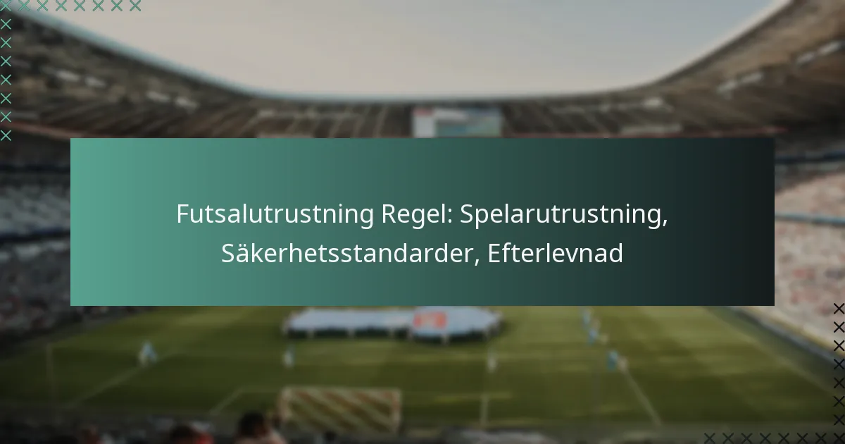 Futsalspelare måste följa specifika krav på utrustning för att säkerställa säkerhet och efterlevnad under matcher. Nyckelkomponenter inkluderar lämpliga skor, benskydd, uniformer och ytterligare skyddsutrustning, som alla måste uppfylla fastställda standarder.